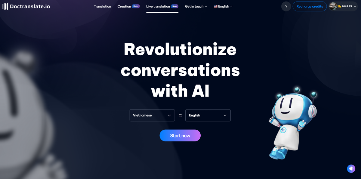 Tính năng **Live Translation** trước đây được giới thiệu trong DocTranslate.io, nay đã được phát triển thành **một sản phẩm độc lập** với nhiều nâng cấp mạnh mẽ về tốc độ, độ chính xác và khả năng xử lý ngôn ngữ đa chiều.